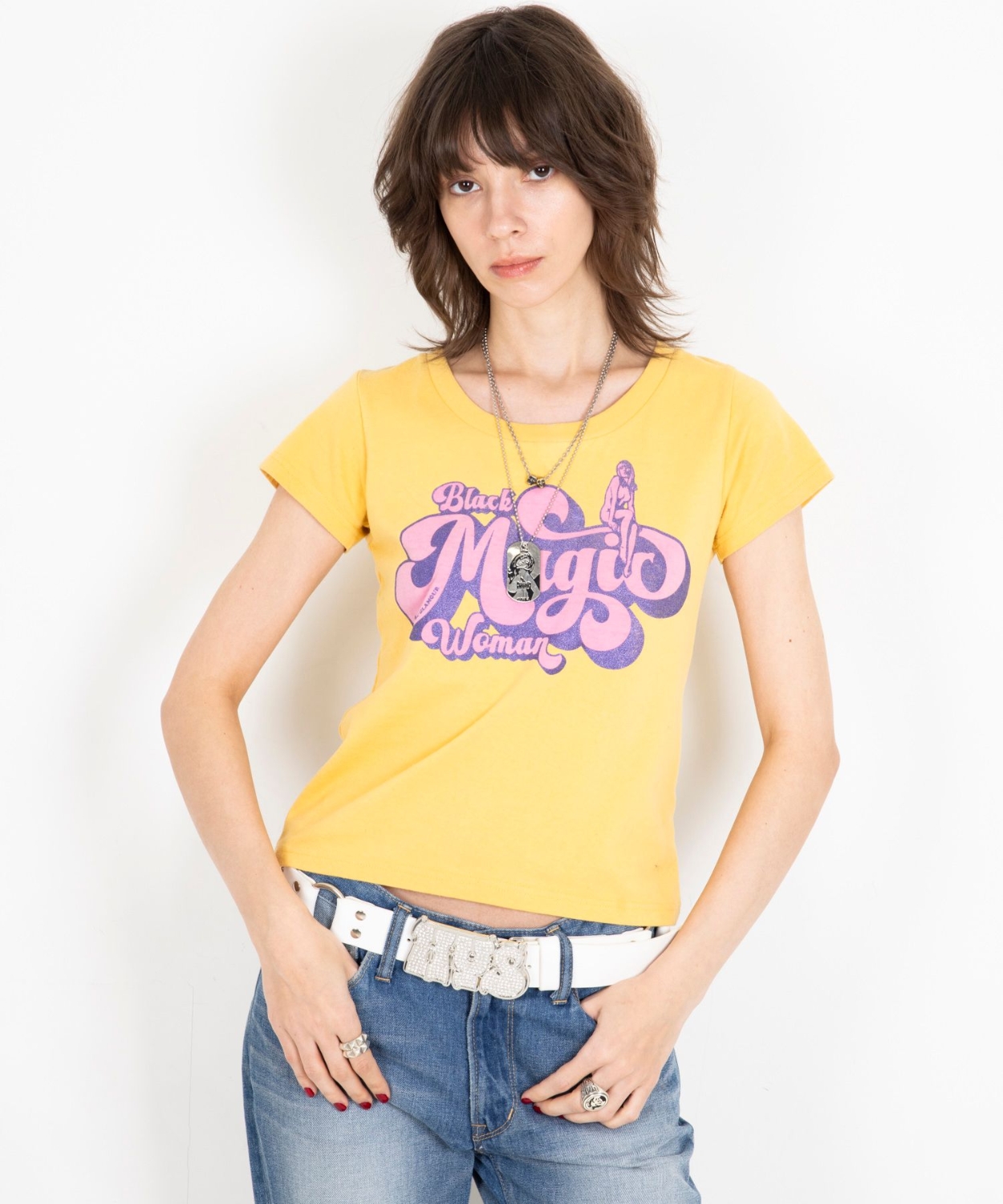 90年代を意識したタイトなチビTシャツ。