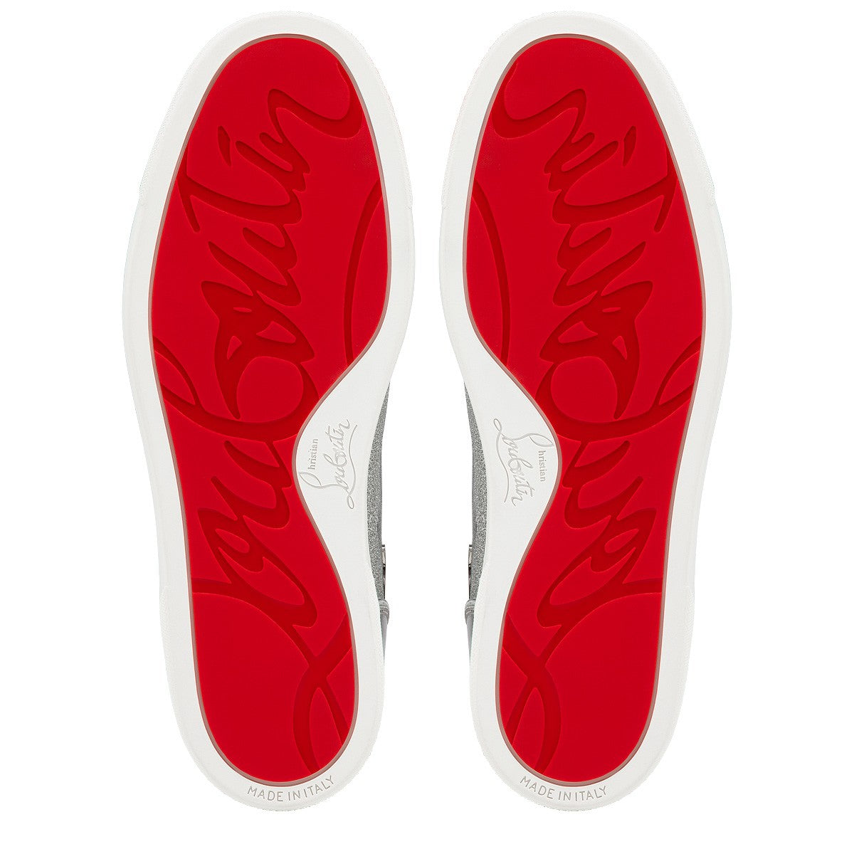 The Lou Spikes is an iconic hi-top sneaker with a 1980’s inspired look and signature details. The sneaker has been reworked for this season, featuring a mix of mirrored Specchio and calf Glitter leathers in silver, finished with tonal laces and a creeper sole. In inimitable Maison Christian Louboutin style, evenly spaced tone-on-tone spikes adorn the toe.